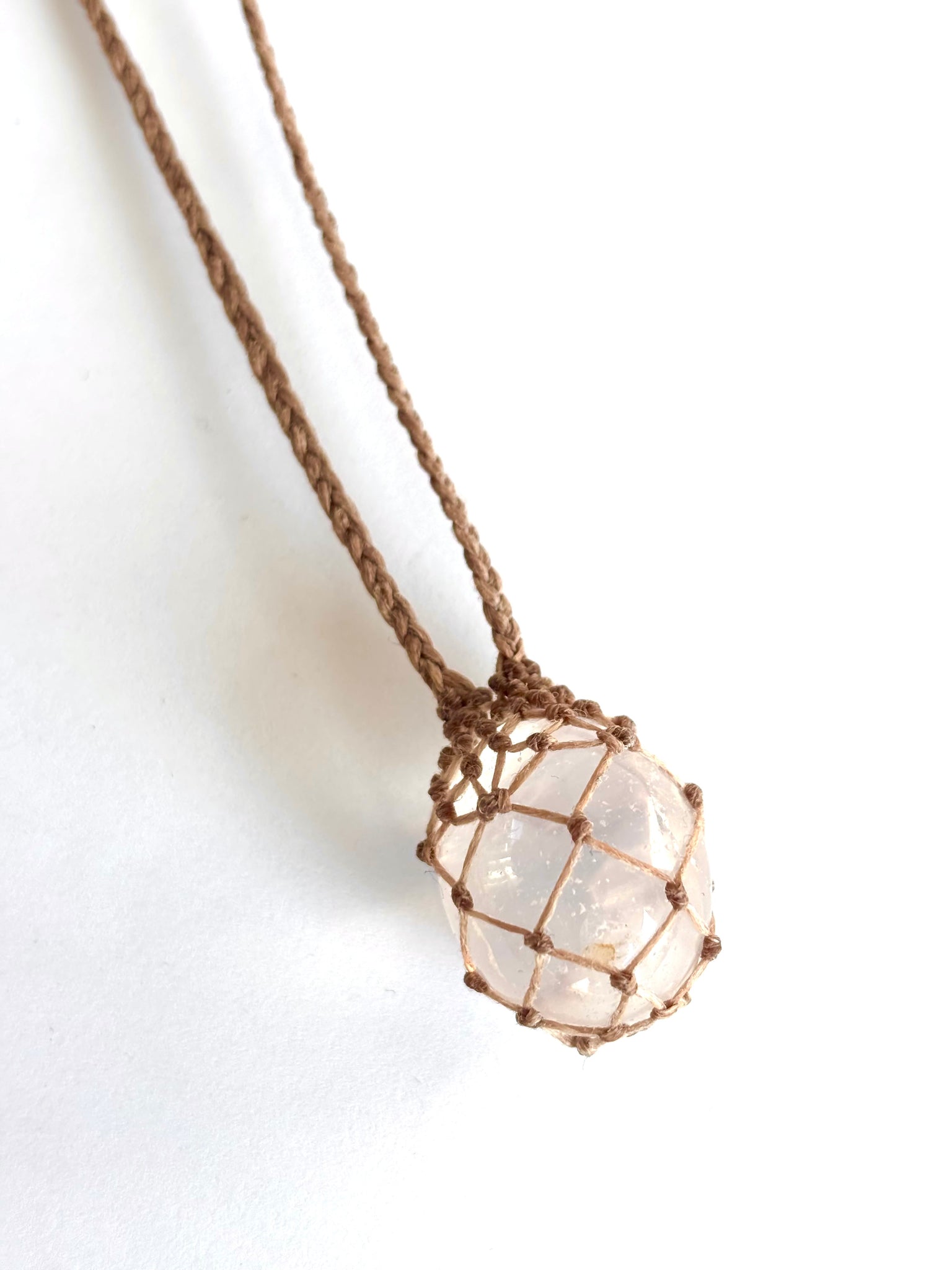 I love this necklace because it is small, great for every day and that is perfect for rose quartz - its warm soft feeling is the best companion for self-love all day long. Small 3/4” polished smooth oval (imperfect oval) netted in tan cord and sits at 36” and includes a sliding jade bead to make it adjustable in length. One of a kind - just like you!