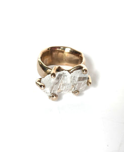 Made with the Lost Wax Casting process, I use beeswax to carve each piece which is then cast into metal. It's like making small sculptures with each ring and they are decidedly imperfect. I like to use bronze because it has a warm color, that can darken with age but if you wear it constantly it will stay polished, a vigorous rub on your jeans will polish it right back to a beautiful glow. Bronze is used to make singing bowls and I believe my jewelry carries a harmonizing vibration. However I can make something in any metal for you, we can work together with you to make a piece of unique design.