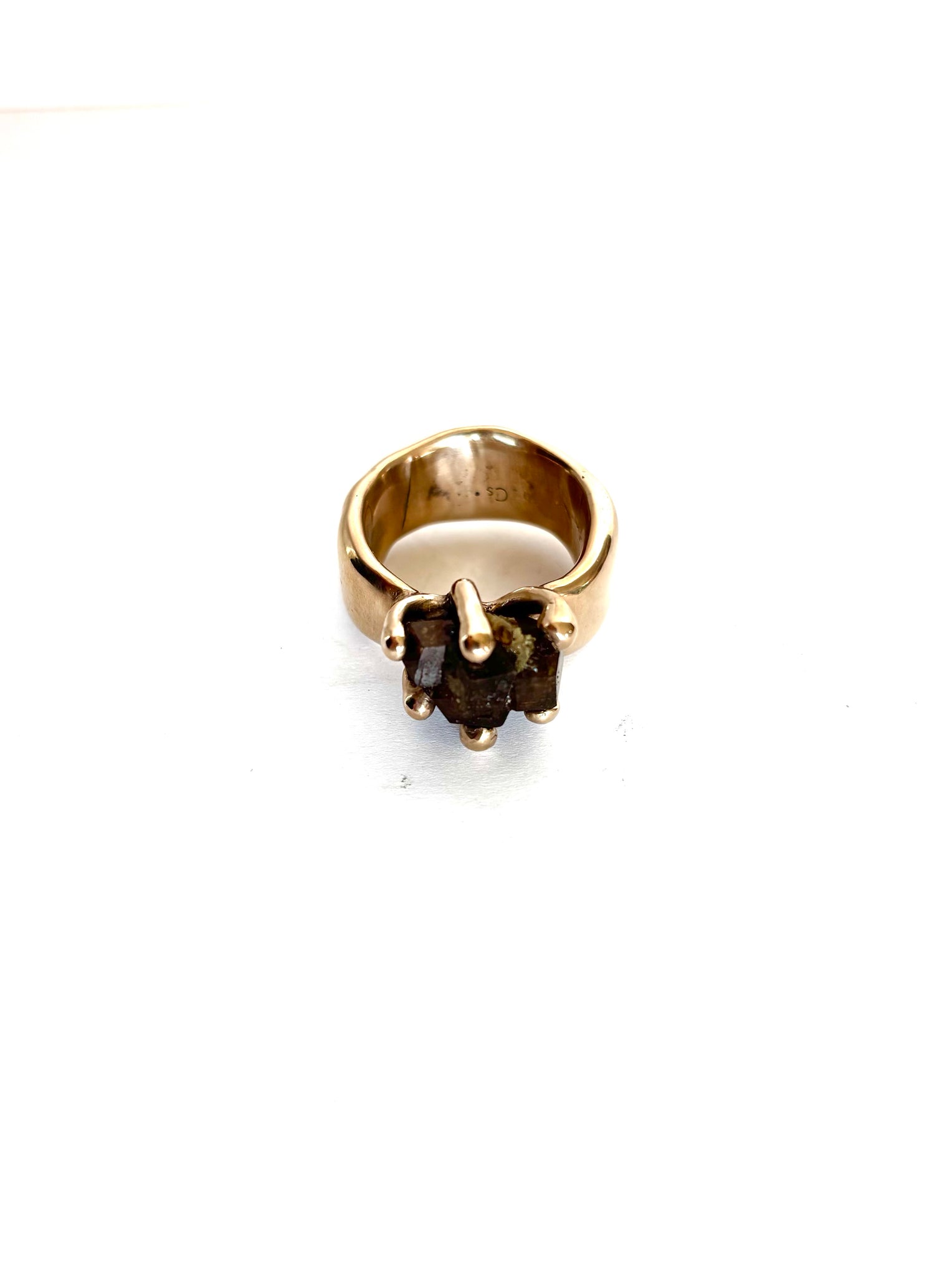 Natural garnet claw-set in bronze ring. Size 9 - one of a kind