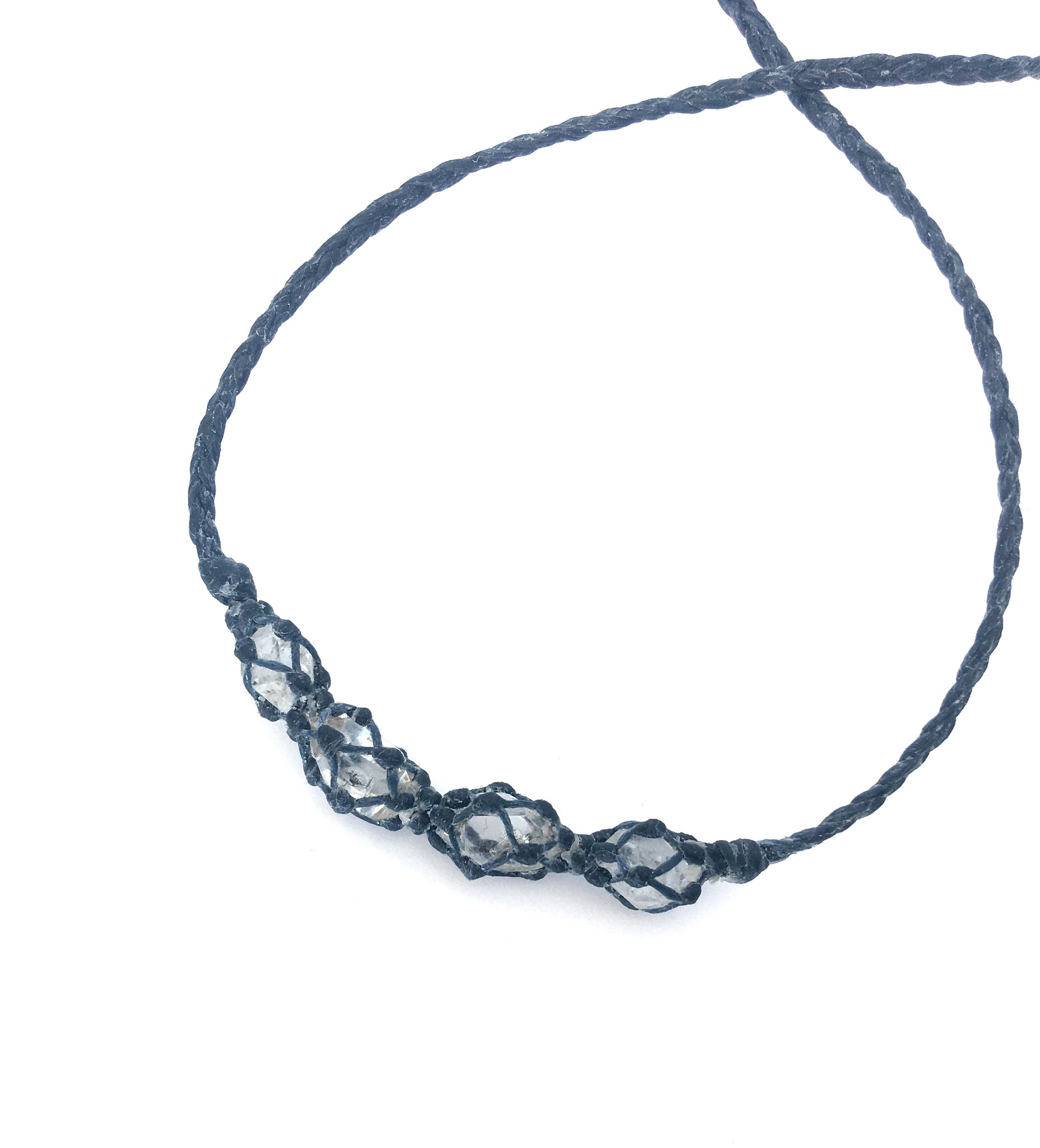Herkimer diamonds are from Herkimer NY, so naturally fair trade. Mine are from a man who personally mines his own claim, so I know their authenticity. Herkimer diamonds gently release and transform, bringing your souls purpose to the fore and activating the light body. These bracelets wrap twice and tie (on a small wrist they can wrap three times). I made them super long so you can adjust and cut off the ends to customize your bracelet.