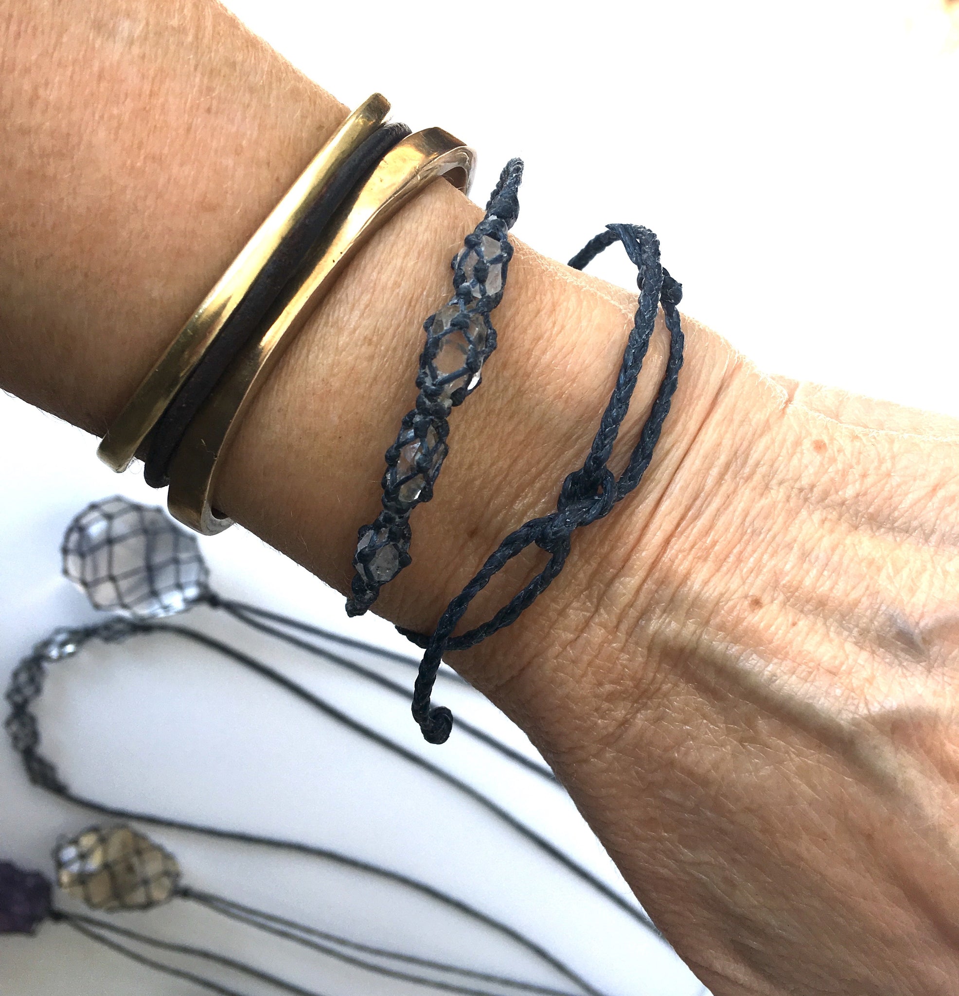 Herkimer diamonds are from Herkimer NY, so naturally fair trade. Mine are from a man who personally mines his own claim, so I know their authenticity. Herkimer diamonds gently release and transform, bringing your souls purpose to the fore and activating the light body. These bracelets wrap twice and tie (on a small wrist they can wrap three times). I made them super long so you can adjust and cut off the ends to customize your bracelet.
