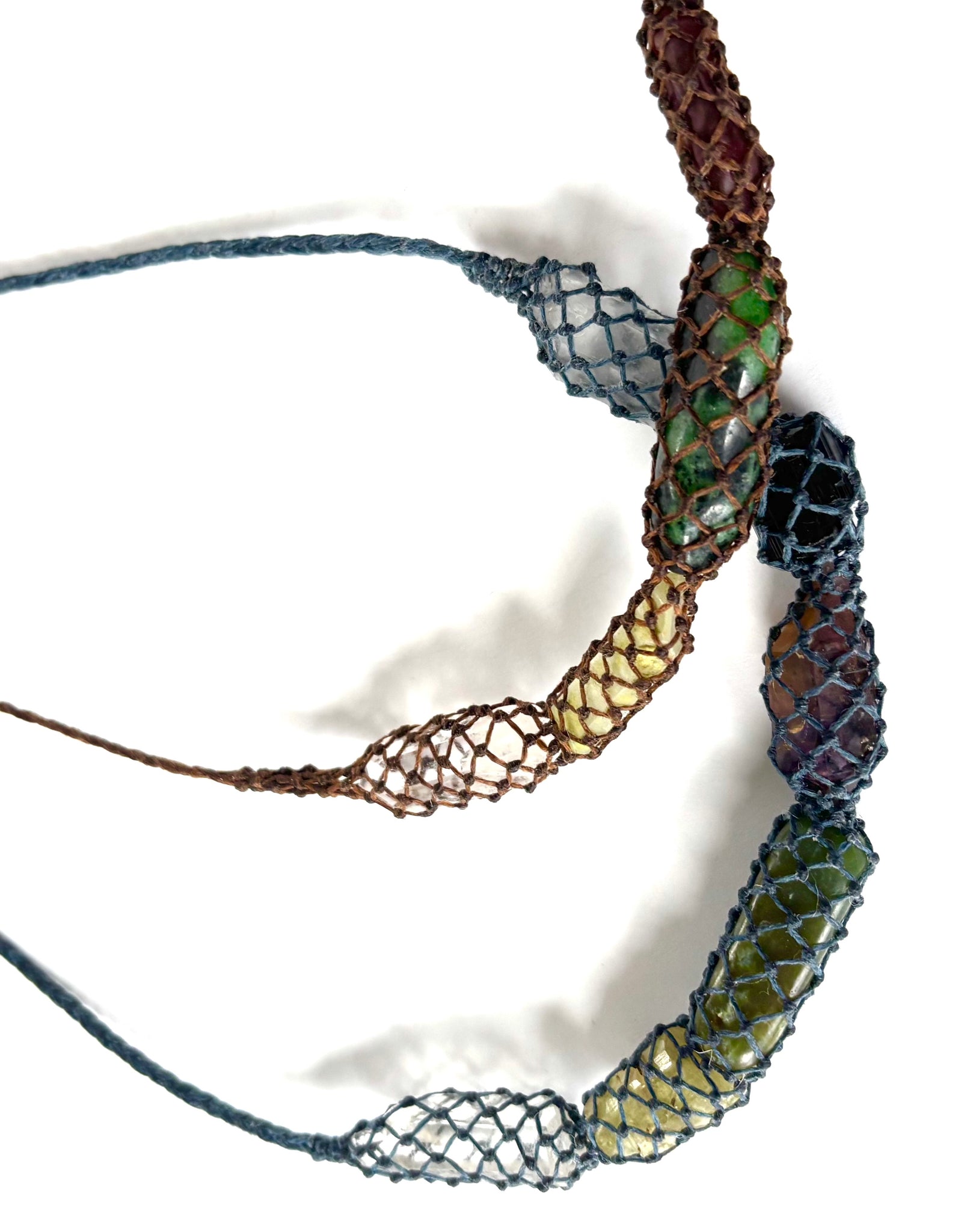 I made these because if I’m going to be honest one crystal is never enough! (Says the girl who has a house full of crystals!) but I really think it’s true - the attraction is deep and in the case of crystals the more the better. This piece has an incredible clear Quartz cathedral, yellow apatite, jade, amethyst scepter, black tourmaline, double terminated clear Quartz netted into a 32” necklace