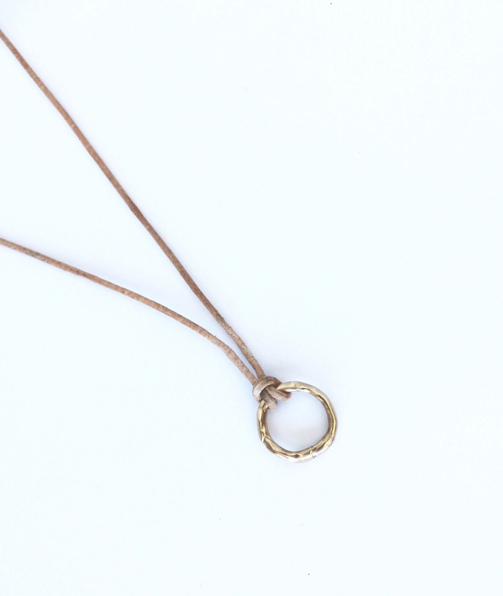 The shapes I use on my jewelry are free-form. I make them from beeswax and have them cast into metal (lost wax casting), each piece is perfectly imperfect. The circle of life is an approx. 1/2 inch diameter circle that can be use as a charm, strung on leather (at approx. 24") or on navy cord (includes a 10k gold lobster clasp). Made to order 6-8 weeks