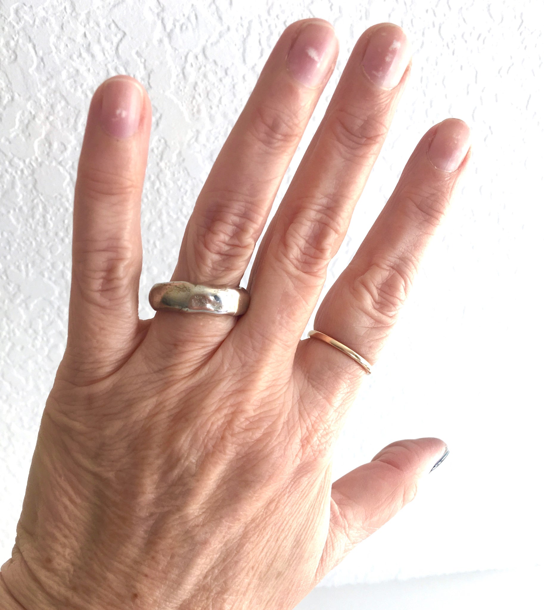 These rings are completely free-form - finding the beauty in all things natural and imperfect. Each ring is made unique with beeswax and a dipping process, which creates a smooth and beautiful ring. Wabi sabi rings can be stacked or purchased in different metals, or just worn single. They make great gifts for friends. These rings are custom made to size so take 2-3 weeks. Please email me if you would like me to create stacking rings - carina@nonchalantmom.com