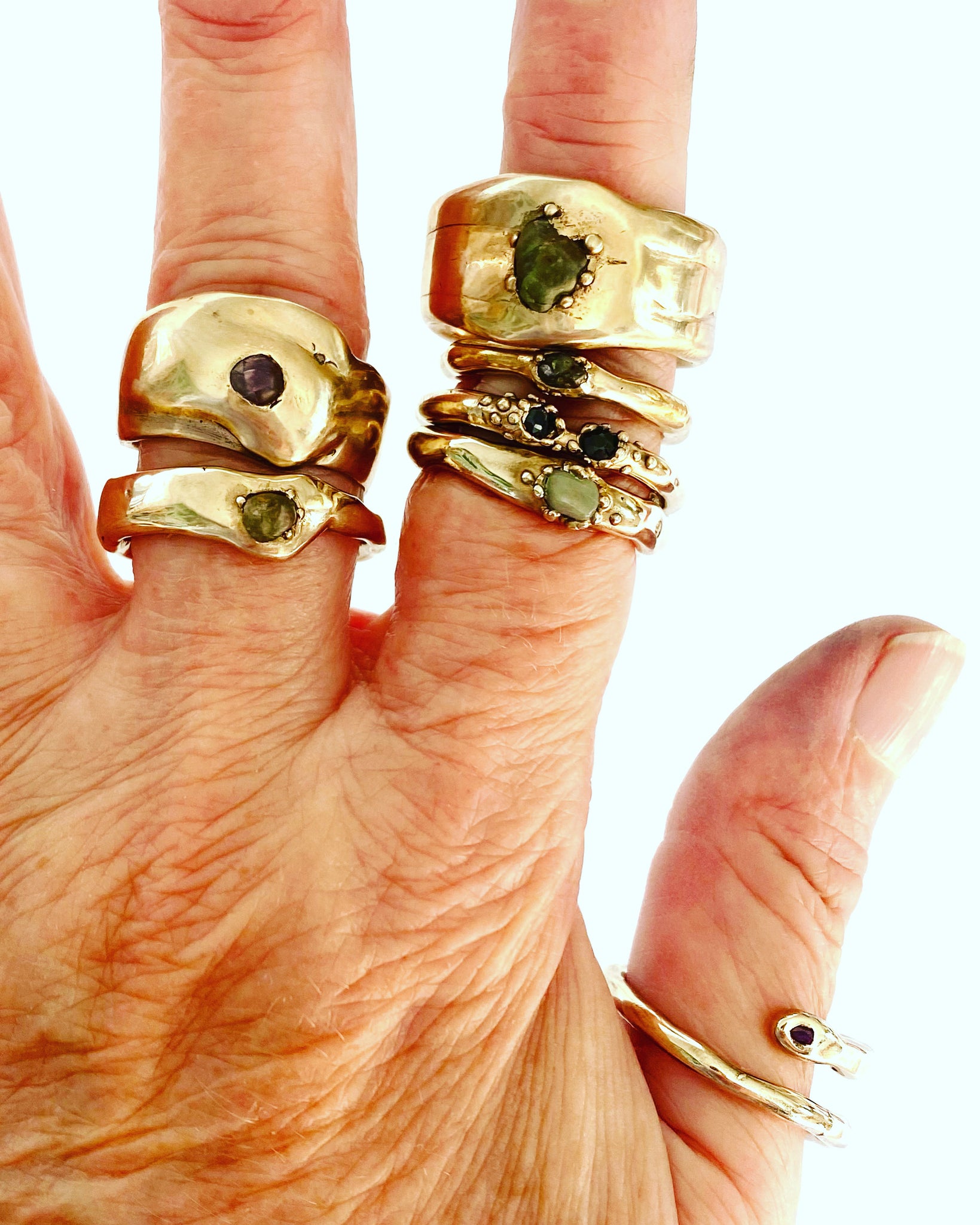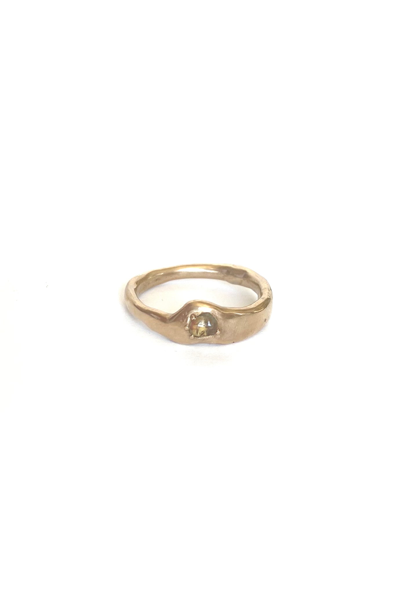 Medium size Montana sapphire polished in its natural shape to gorgeous shine in a bronze wabi sabi band - size 10.5 - unisex - one of a kind