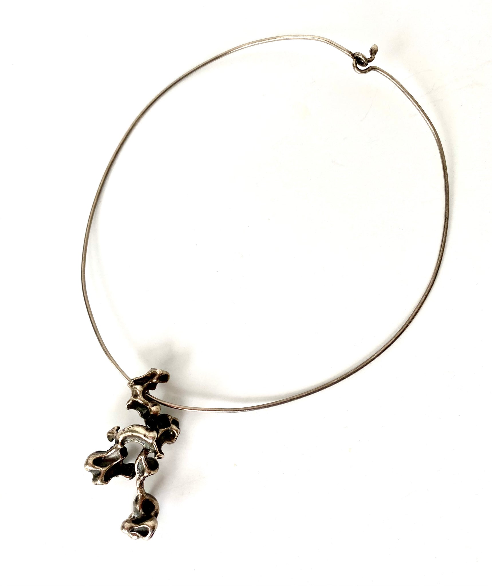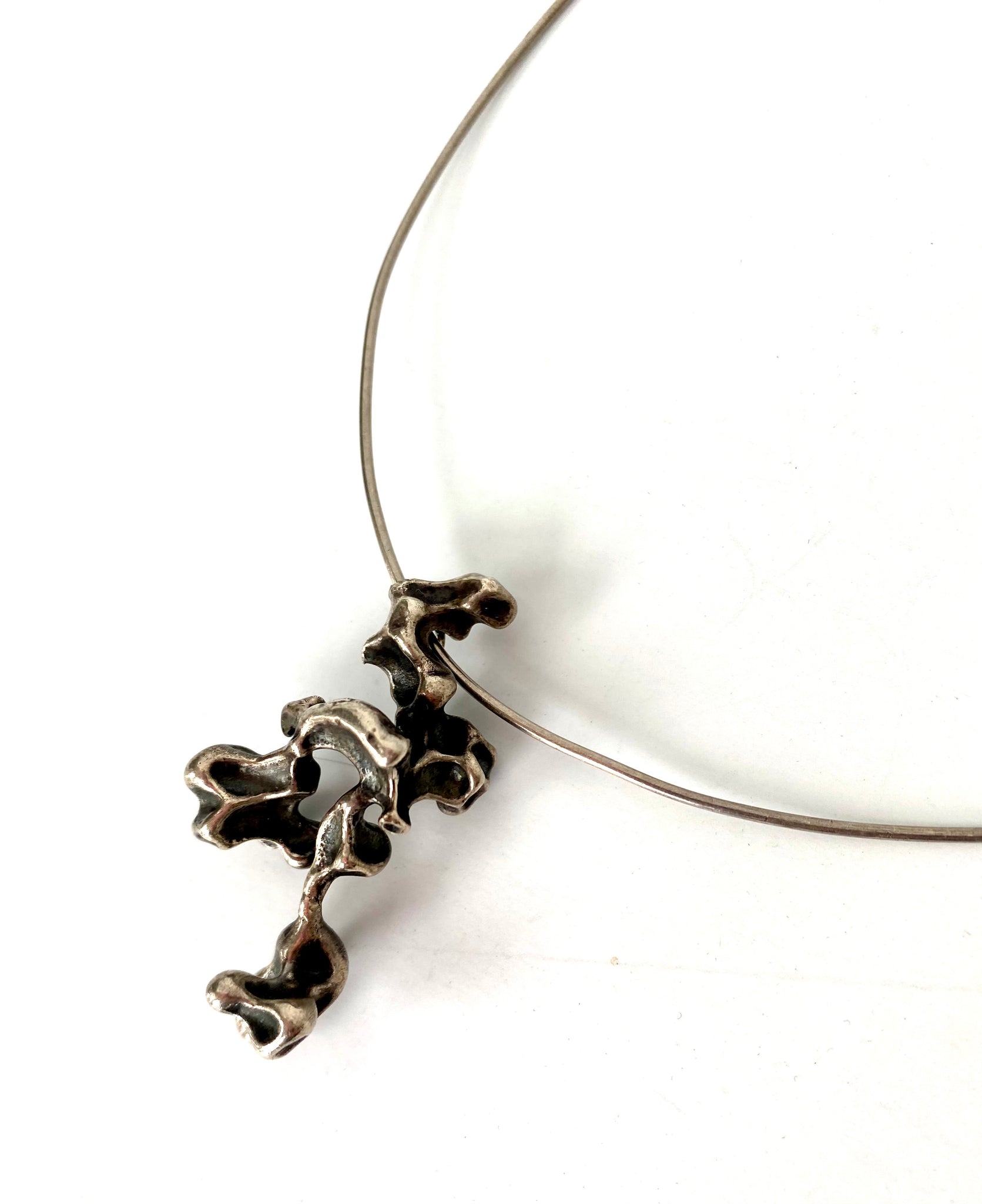 Vintage sterling silver choker necklace with brutalist charm (approx. 2.5” in length)
